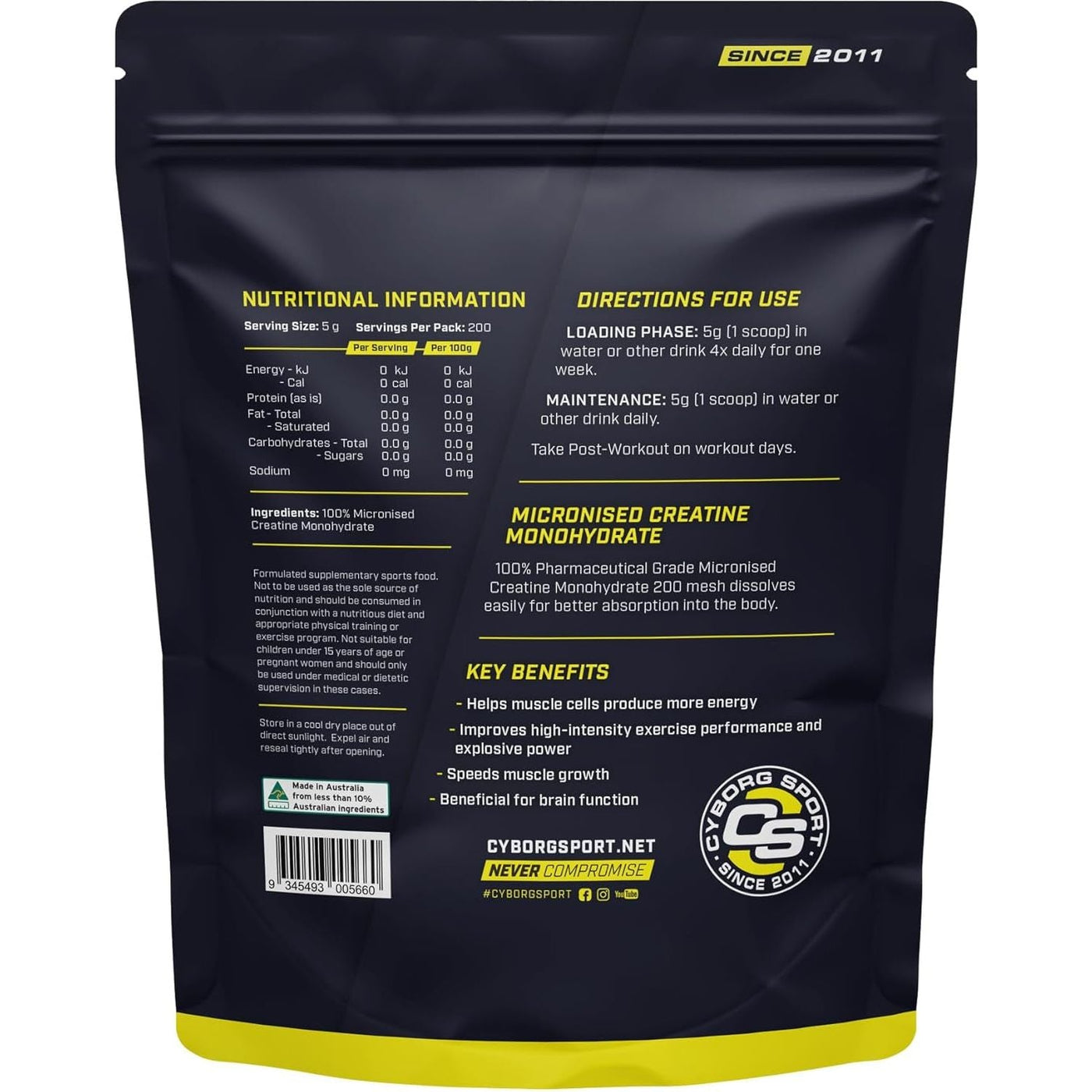 CYBORG SPORTS'S PHARMACEUTICAL GRADE Creatine Monohydrate has been Micronised for better solubility and absorption - no gritty texture, gentler on the stomach.