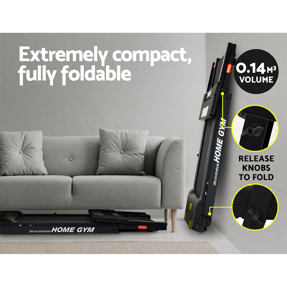For a truly effective approach to weight loss and toning, our Everfit Fitness Treadmill is your perfect companion. Compact and sturdy with its powder-coated steel frame, the treadmill allows you to perform essential cardio exercises within the comfort of your home.